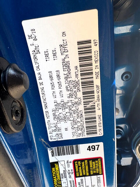 2018 Toyota Tacoma V6 4WD 6-Speed 3.5L V6 PDI DOHC 24V LEV3-ULEV70 278hp 4WD. WITH ONLY 100,543 MILES , FULL LEATHER, LONG BED AUTOMATIC TRANSMISSION, LOADED 4X4 , NEW TIRES.BED COVER.